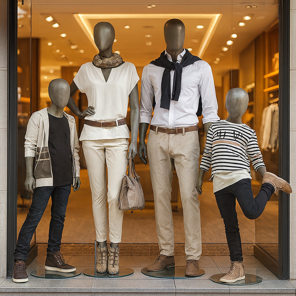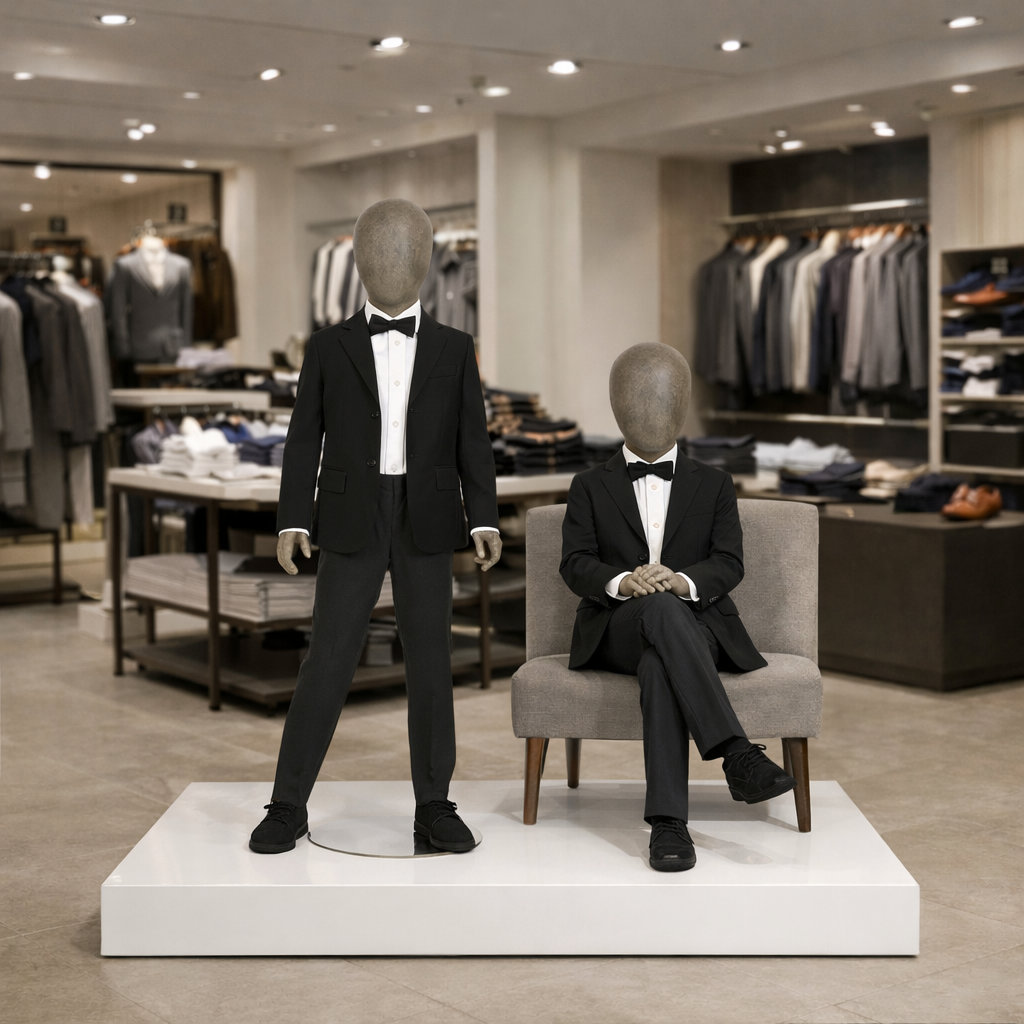 - Lieferumfang: Kinder-Schaufensterfigur inkl. runder Metallstandplatte
