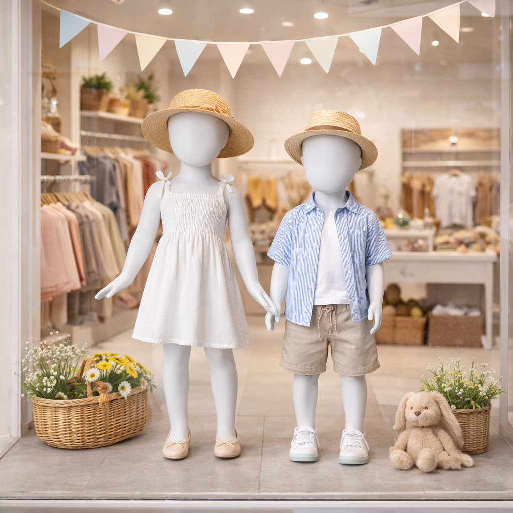 - Lieferumfang: Baby-Schaufensterpuppe inkl. Glasstandplatte
