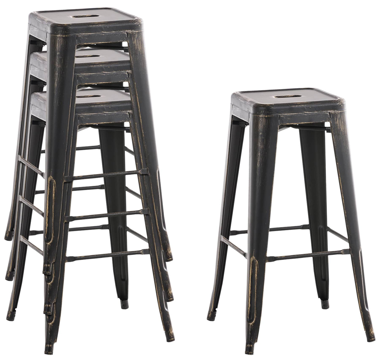 Praktisch: Die lackierte Oberfläche ist extrem pflegeleicht und kann mühelos mit einem feuchten Tuch gereinigt werden. Bei Platzmangel kann der Barhocker sogar im Handumdrehen gestapelt werden.