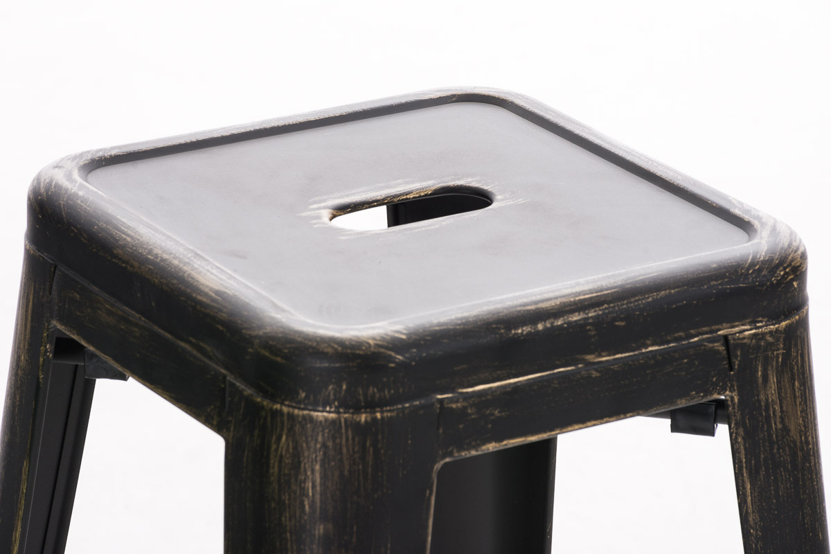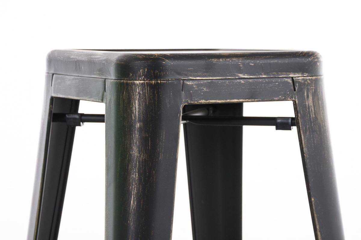 Dieser Barhocker aus pulverbeschichtetem Metall zeigt immer wahrhaftige Standfestigkeit. Sowohl zwischen den Standbeinen als auch unter der Sitzfläche befinden sich Querstreben, welche für eine hohe Stabilität sorgen - Erstere dienen zugleich als bequeme Fußstütze.