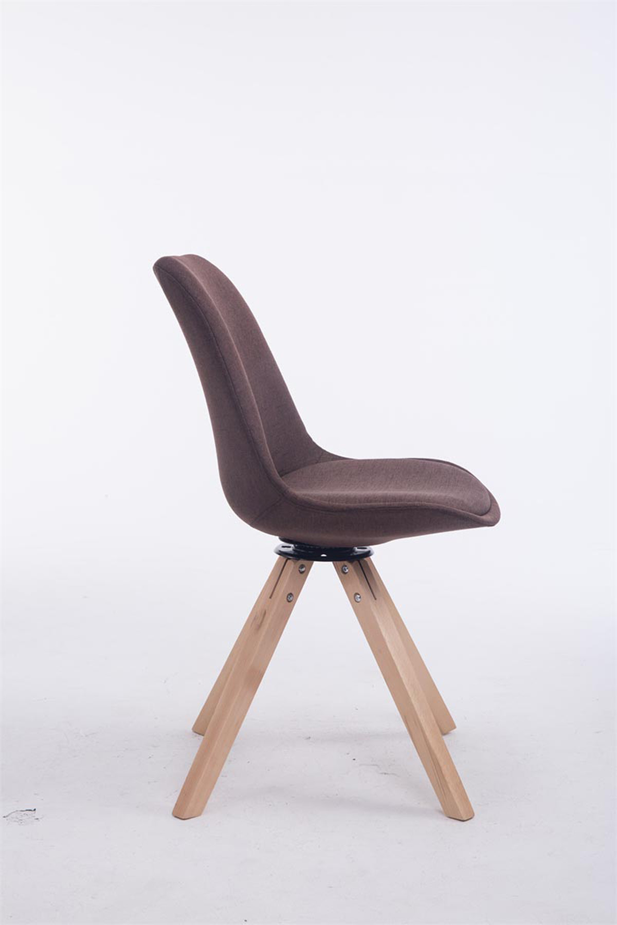 Auf dem drehbaren 4-Fuß Untergestell aus Holz, wahlweise Buchen- oder Eichenholz, steht dieser Besucherstuhl bei jedem Anlass gut da.