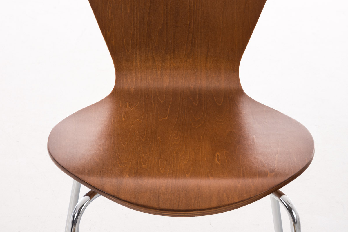 Dieser Besucherstuhl ist ideal für Wartezimmer, Messen und sonstige Veranstaltungen geeignet. Neben Optik und zeitlosem Design zeichnet sich dieser Besucherstuhl besonders durch seine ergonomisch geformte Sitzfläche aus, die auch längere Sitzphasen nicht anstrengend werden lässt. Der Sitz besteht aus lackiertem Holz (Die Farben "Eiche" und "Walnuss" sind aus Echtholzfurnier). Das Gestell aus Metall in Chromoptik sorgt für einen stabilen und sicheren Stand.