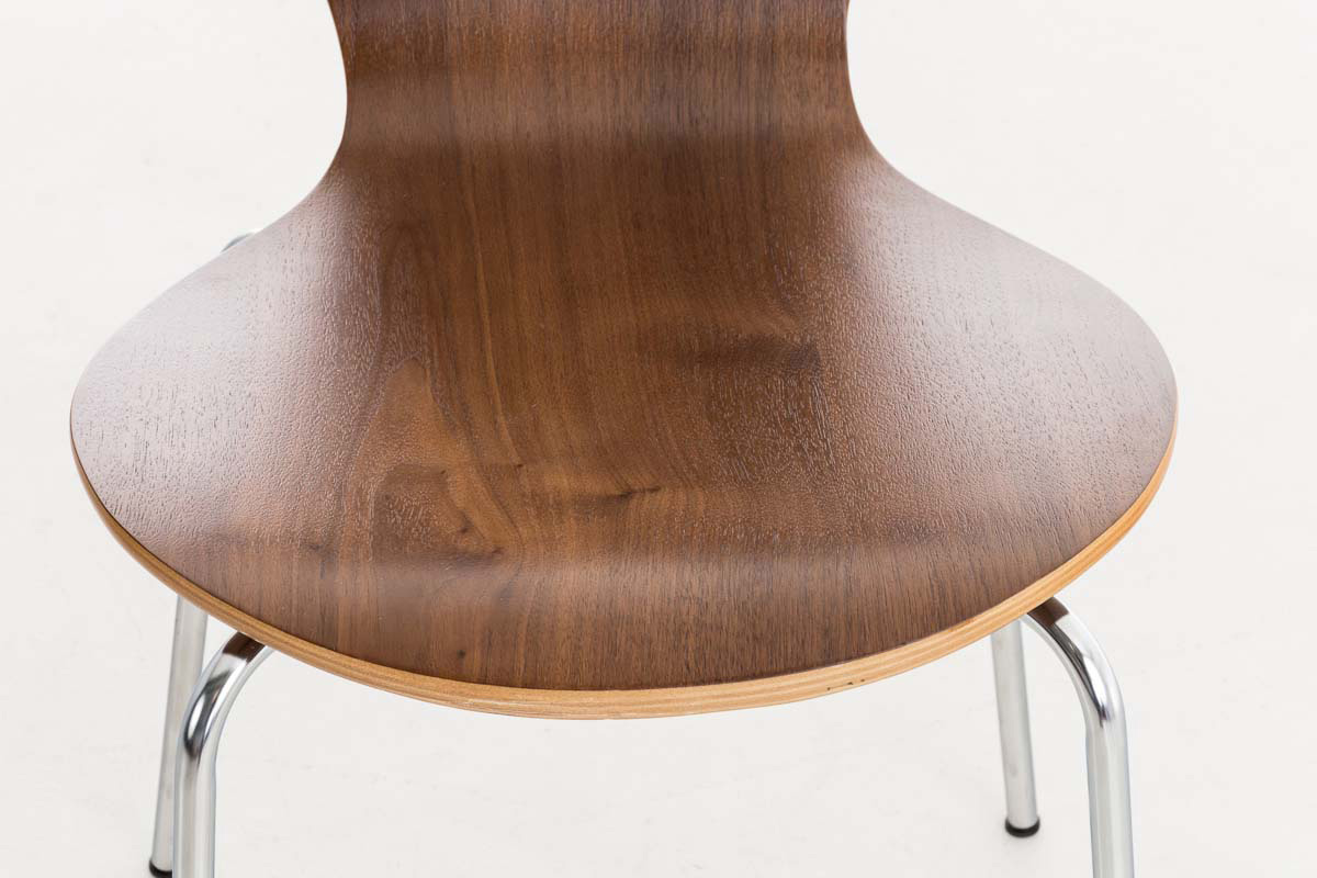 Dieser Besucherstuhl ist ideal für Wartezimmer, Messen und sonstige Veranstaltungen geeignet. Neben Optik und zeitlosem Design zeichnet sich dieser Besucherstuhl besonders durch seine ergonomisch geformte Sitzfläche aus, die auch längere Sitzphasen nicht anstrengend werden lässt. Der Sitz besteht aus lackiertem Holz (Die Farben "Eiche" und "Walnuss" sind aus Echtholzfurnier). Das Gestell aus Metall in Chromoptik sorgt für einen stabilen und sicheren Stand.