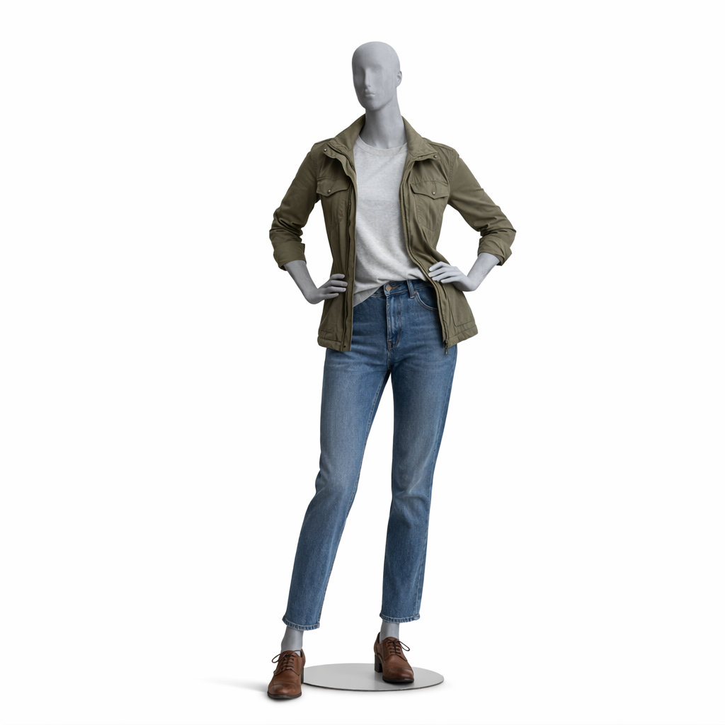 - Lieferumfang: Schaufensterpuppe inkl. runder Metallstandplatte