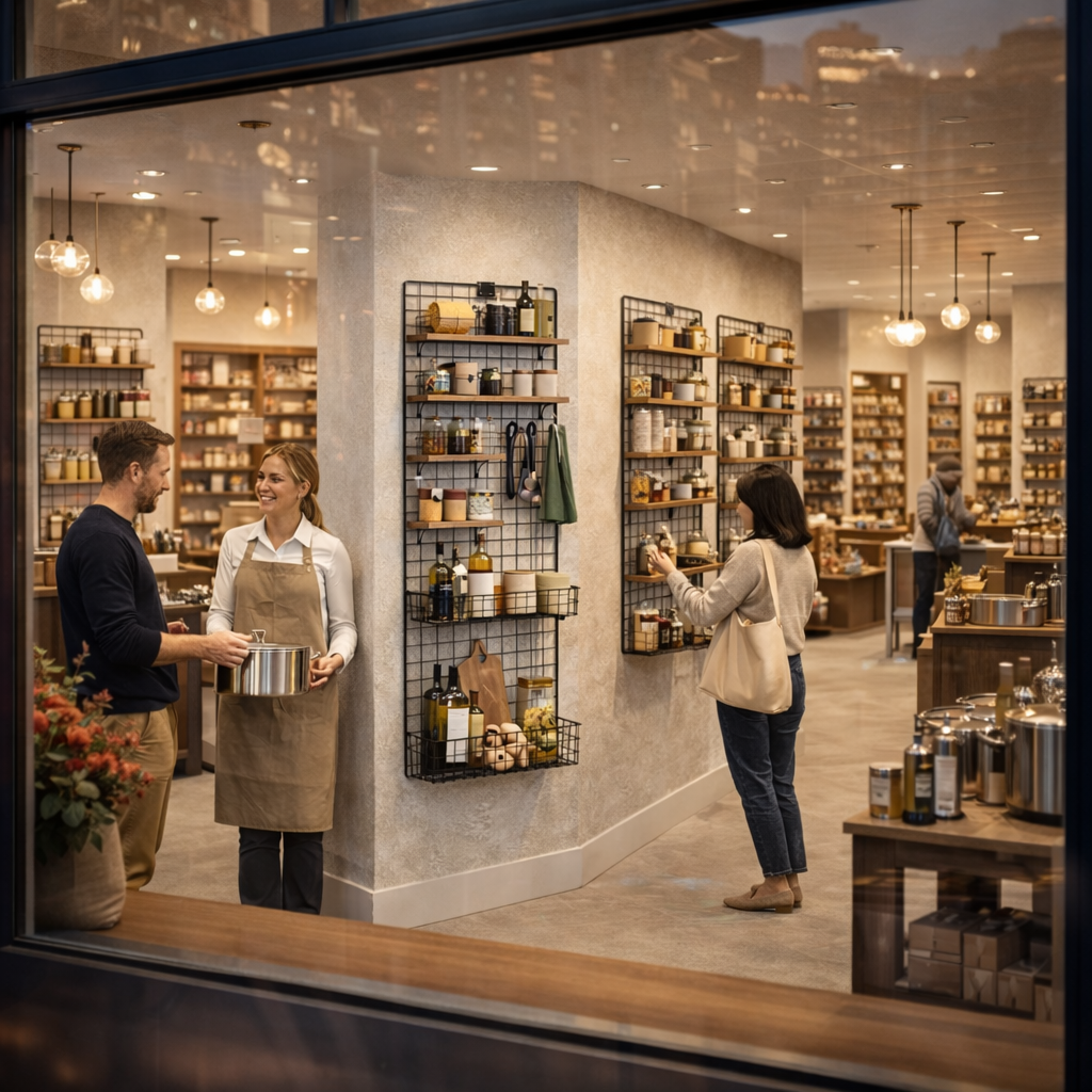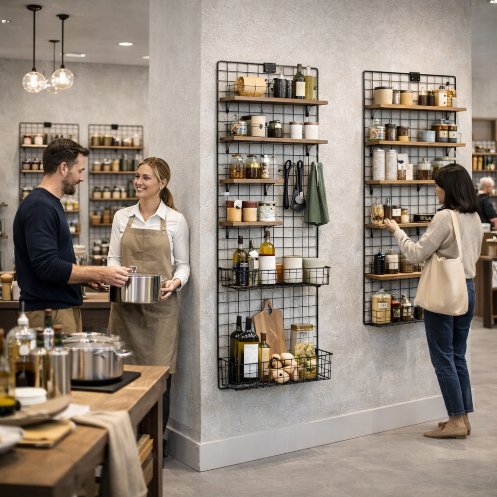 Die hochwertige Deko-Wandgitter im Set ist optimal in jeder Textil Ladeneinrichtung im Einzelhandel einsetzbar.