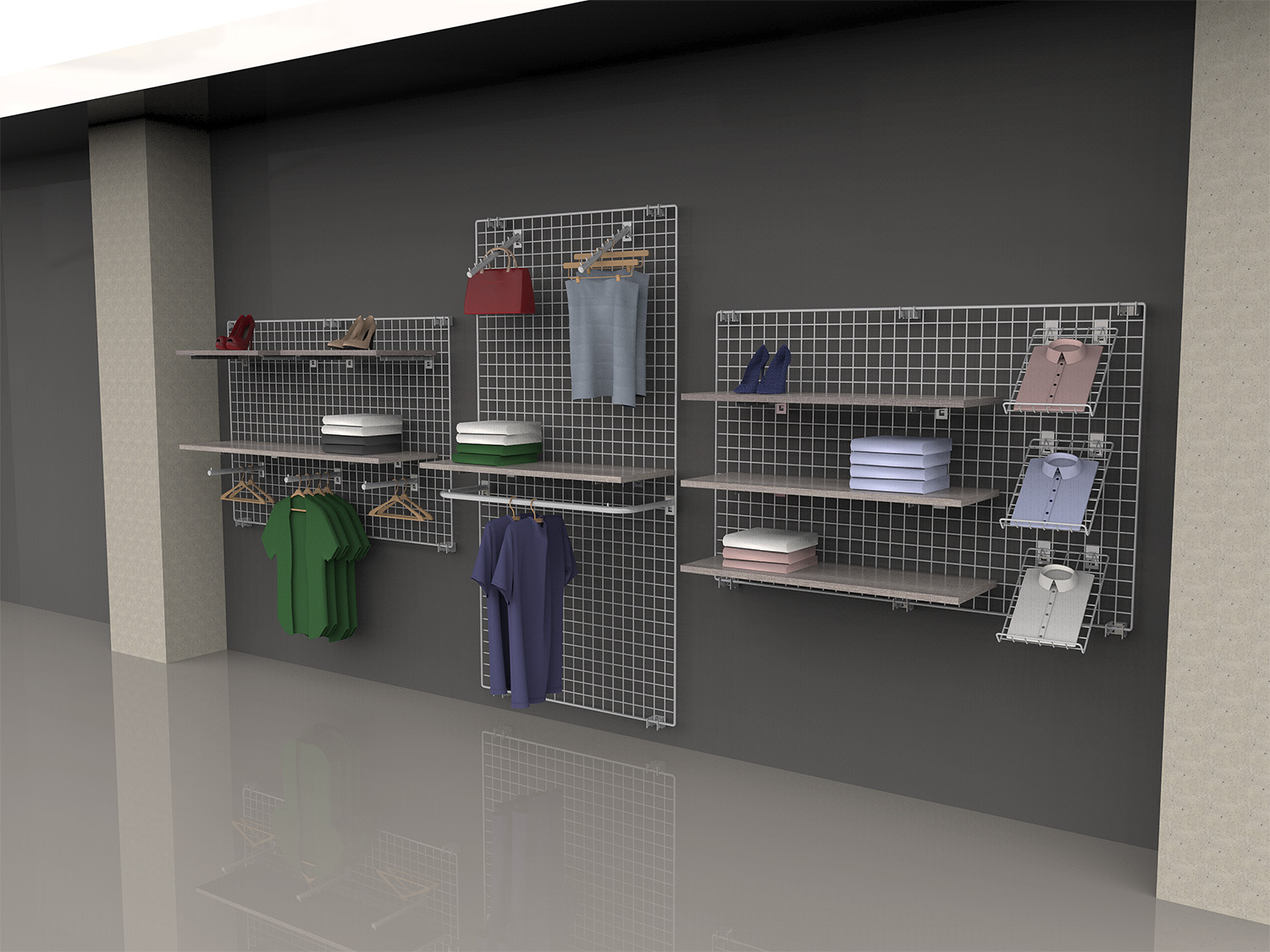 Das hochwertige Deko-Wandgitter im 3er-Set ist optimal in jeder Ladeneinrichtung im Einzelhandel einsetzbar.