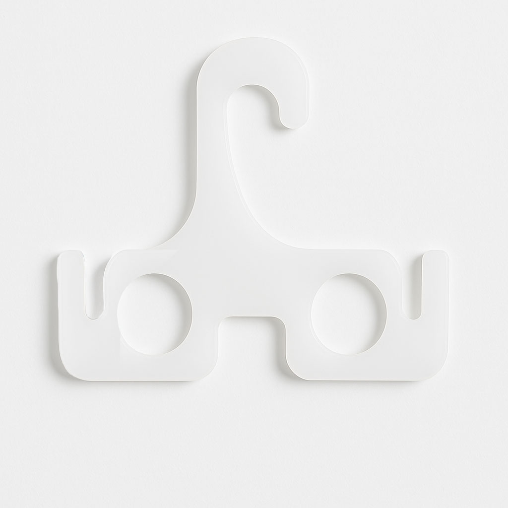 Der Flip-Flop-Halter ist aus weißem Kunststoff und hat die Maße 10 x 8 cm. Die Verpackungseinheit der Flip-Flop-Halter ist 250 Stück. Der Preis ist pro Verpackungseinheit.