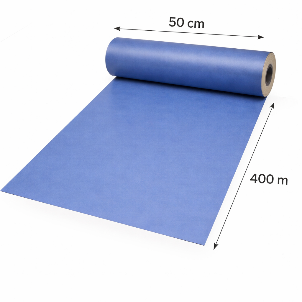 Die Geschenkpapier-Rolle ist einseitig bedruckt und ca. 400 m lang. Die Grammatur ist 50 g/m². Das Papier ist 50 cm breit und wiegt ca. 10 kg. Die Geschenkpapier-Rollen haben die Farbe Blau. Der Preis gilt pro Rolle.