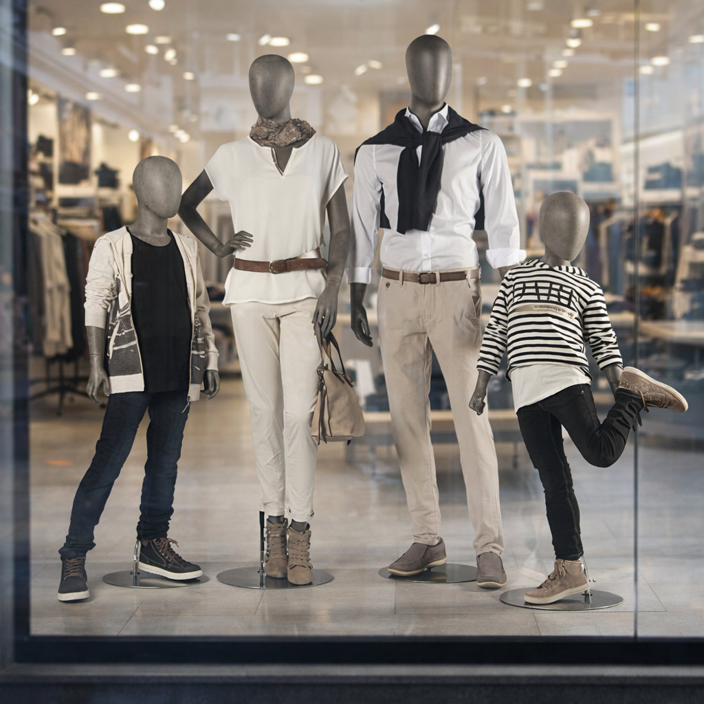- Lieferumfang: Schaufensterfigur inkl. runder Metallstandplatte