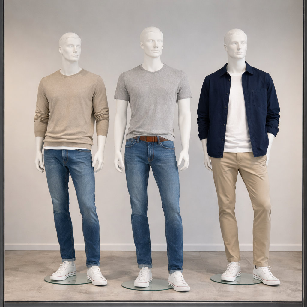 - Lieferumfang: Schaufensterpuppe inkl. runder Glasstandplatte