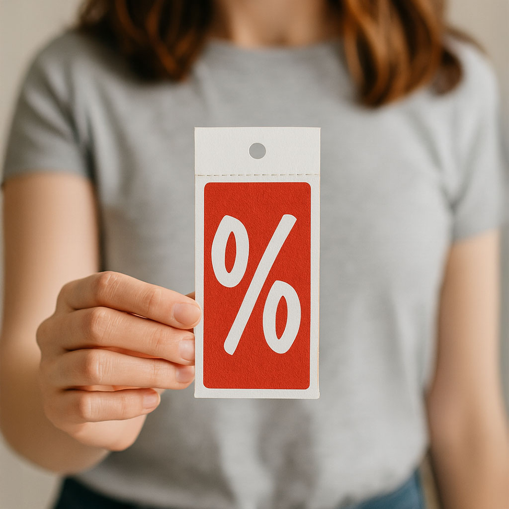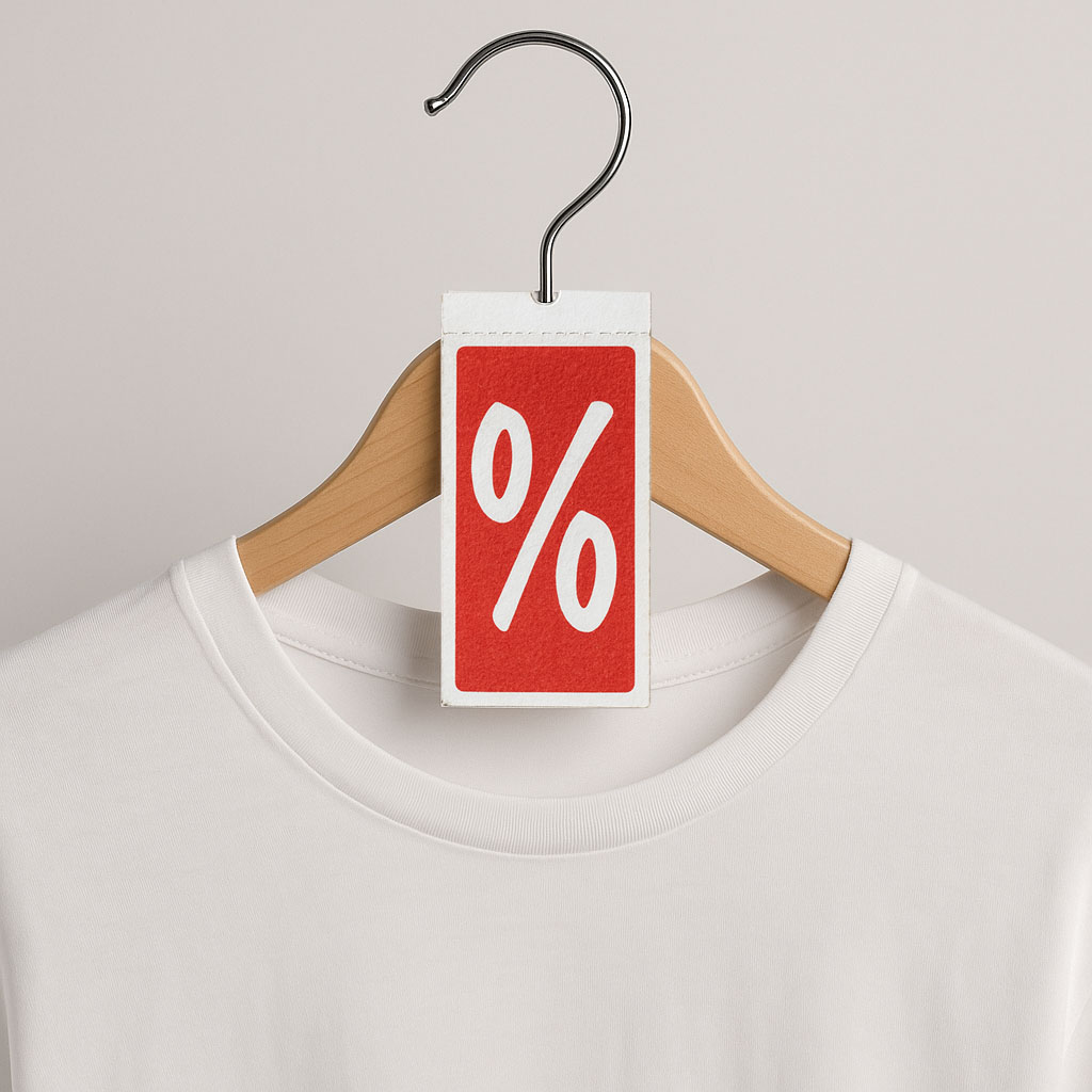Für die Rabattkennzeichnung direkt am Kleiderbügel eignet sich dieser Hänger für Kleiderbügel aus Karton. Der Hänger ist rot mit weißem % Aufdruck. Die Maße des Kleiderbügelhängers sind ca. 4 x 10 cm, die Verpackungseinheit 50 Stück.