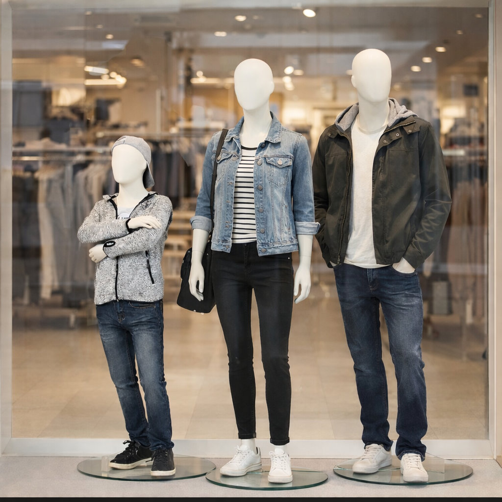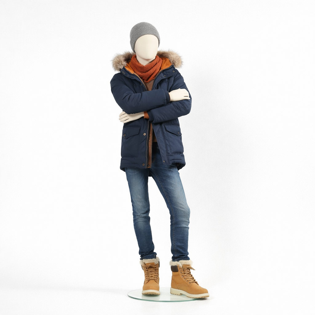 - Lieferumfang: Kinder-Schaufensterpuppe inkl. runder Glasstandplatte