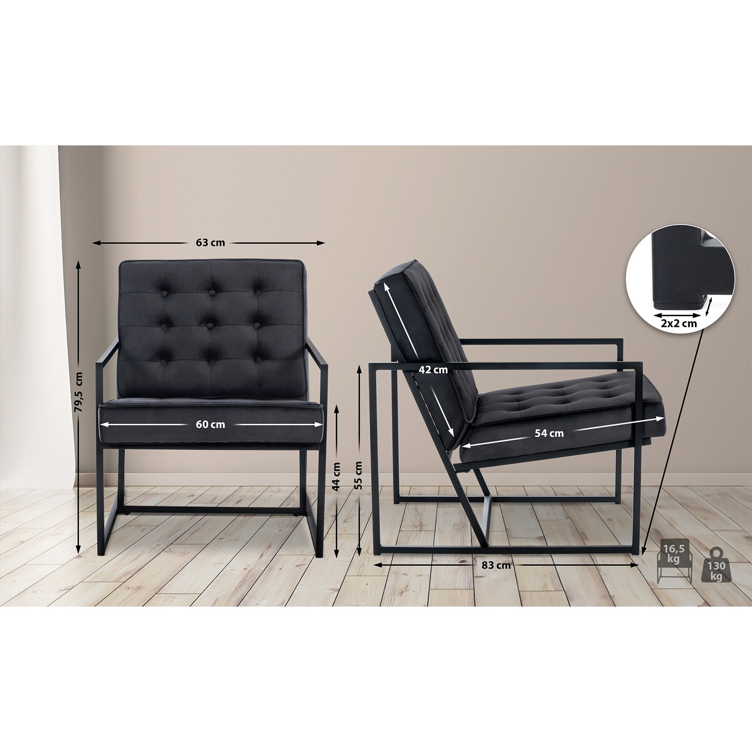- Sitzfläche: B60 x T54 cm