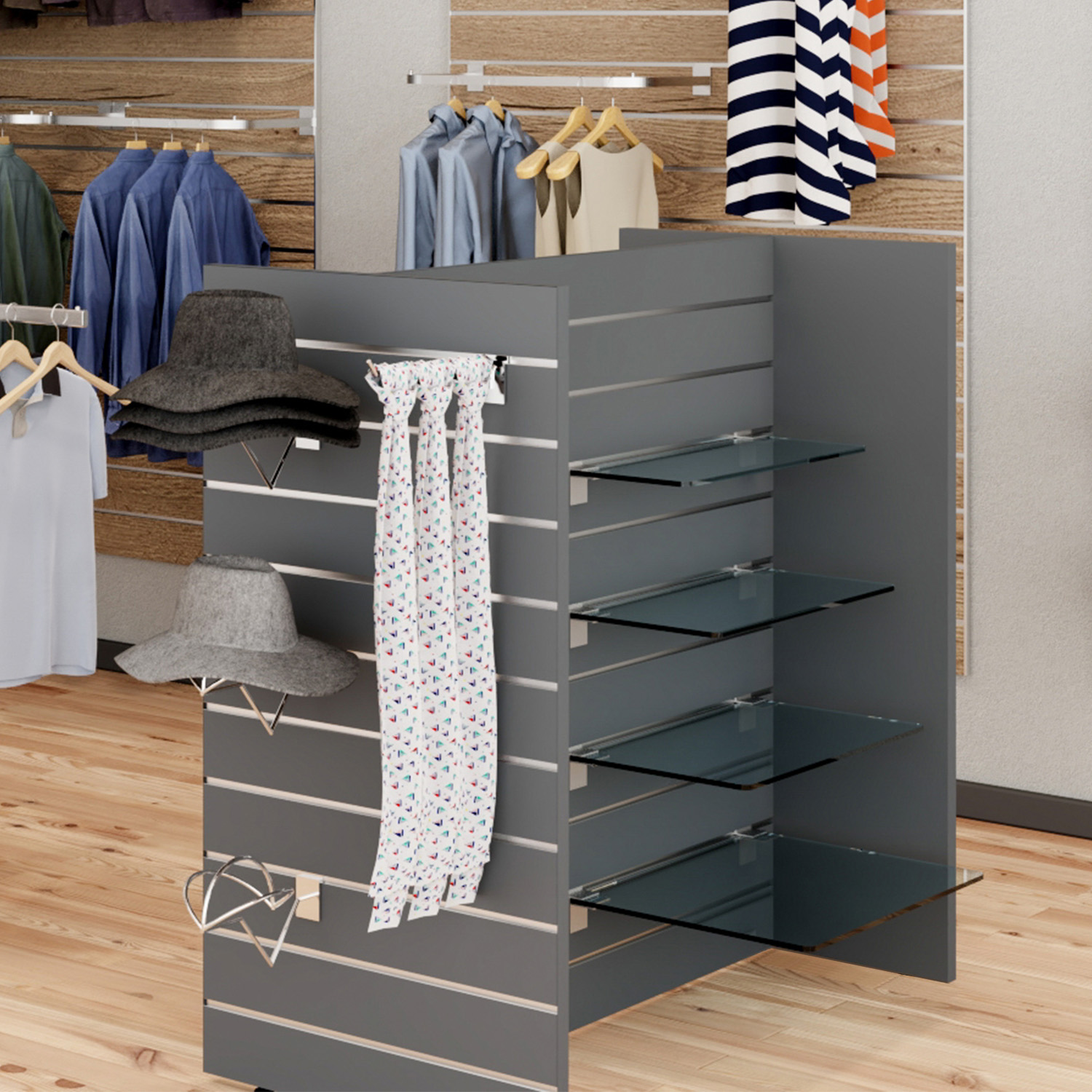 Der Textilständer für Mittelraum hat die Maße H 120 x B 60 x L 120 cm. Die Lamellenwand hat die Stärke 38 mm. Die Aluminium-Einschubprofile sind im Lieferumfang enthalten. Die Wände sind HMB-beschichtet, was bedeutet, dass die Oberfläche äußerst strapazierfähig, glanz- und farbecht sowie temperatur- und klimabeständig ist. Der Textilständer in H-Form ist in der Farbe Schwarz (matt). Die Lieferung erfolgt zerlegt.