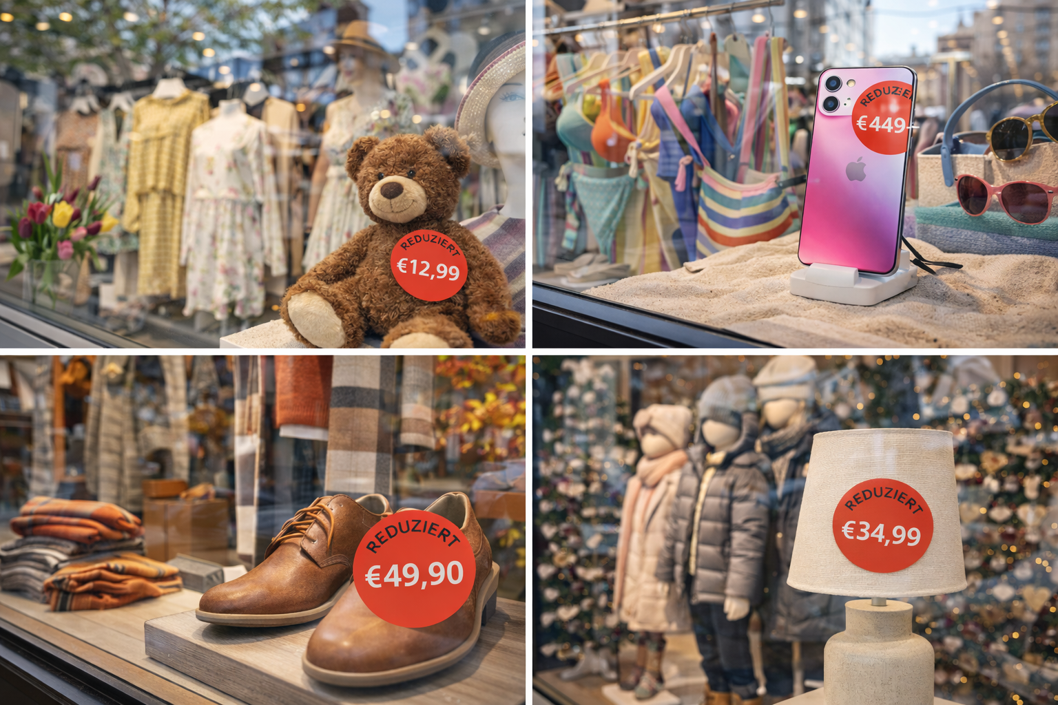 Setzen Sie Ihre Sonderangebote perfekt in Szene – mit unseren roten "REDUZIERT"-Etiketten!