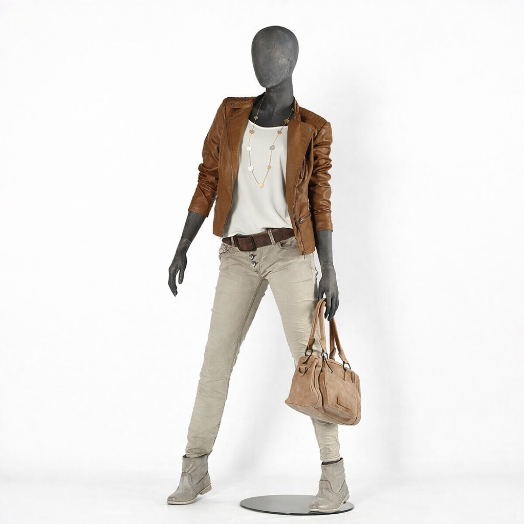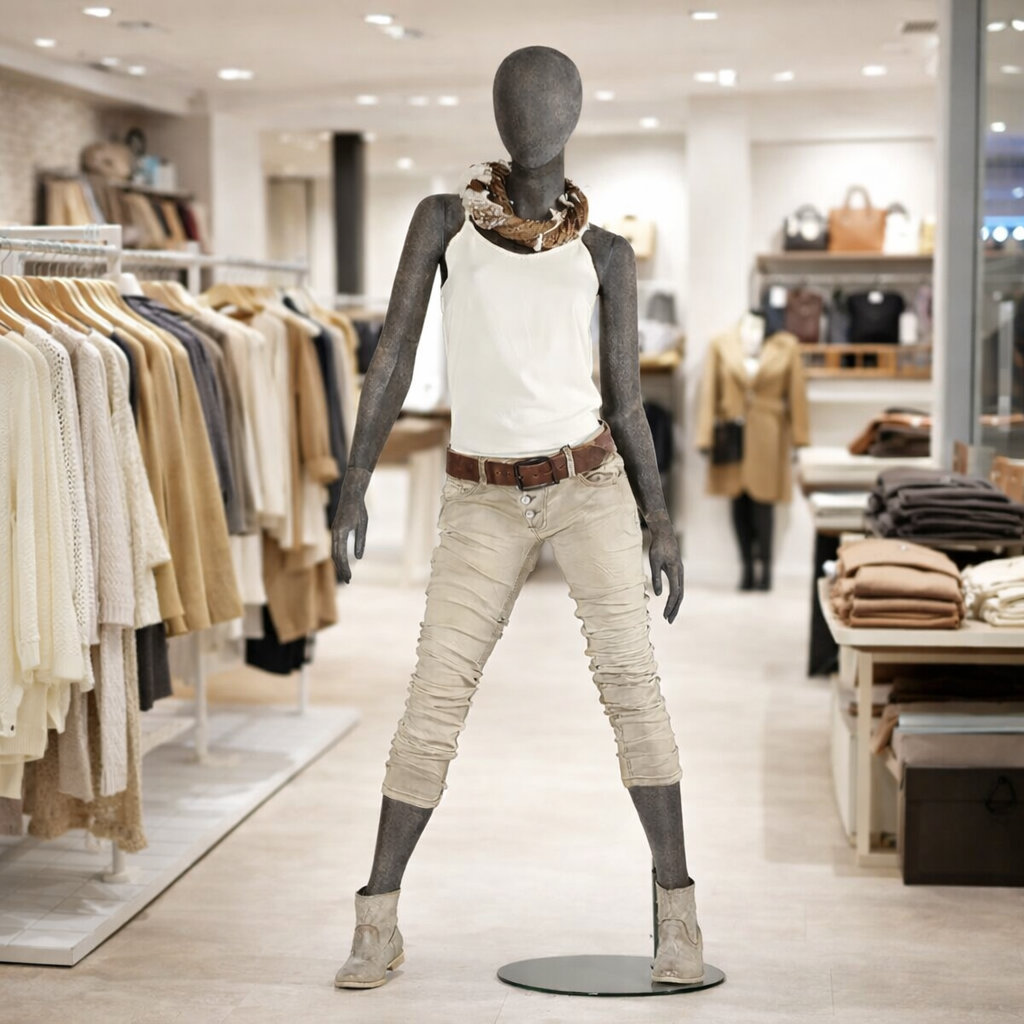 - Lieferumfang: Schaufensterfigur inkl. runder Metallstandplatte