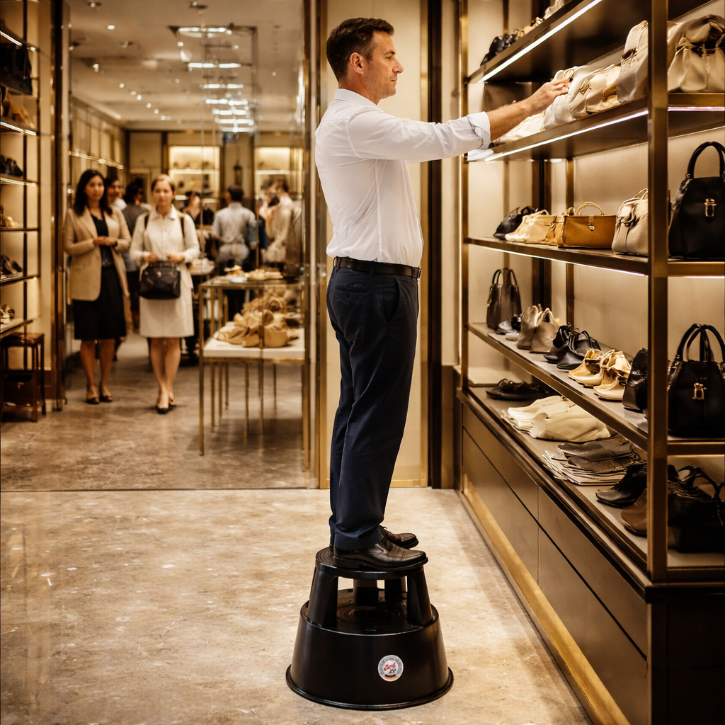 Die Montage ist kinderleicht und ohne Werkzeuge möglich: Einfach Ober- und Unterteil zusammenstecken und schon kann der Kunststoff-Rollhocker in der Ladeneinrichtung verwendet werden.