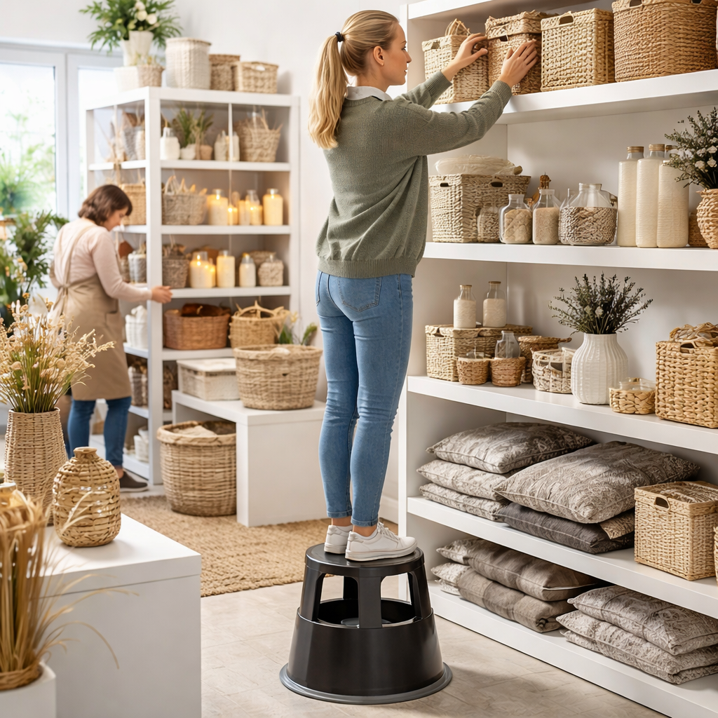 Der Rollhocker Metall ist ein Must-Have für jede Textil Ladeneinrichtung!