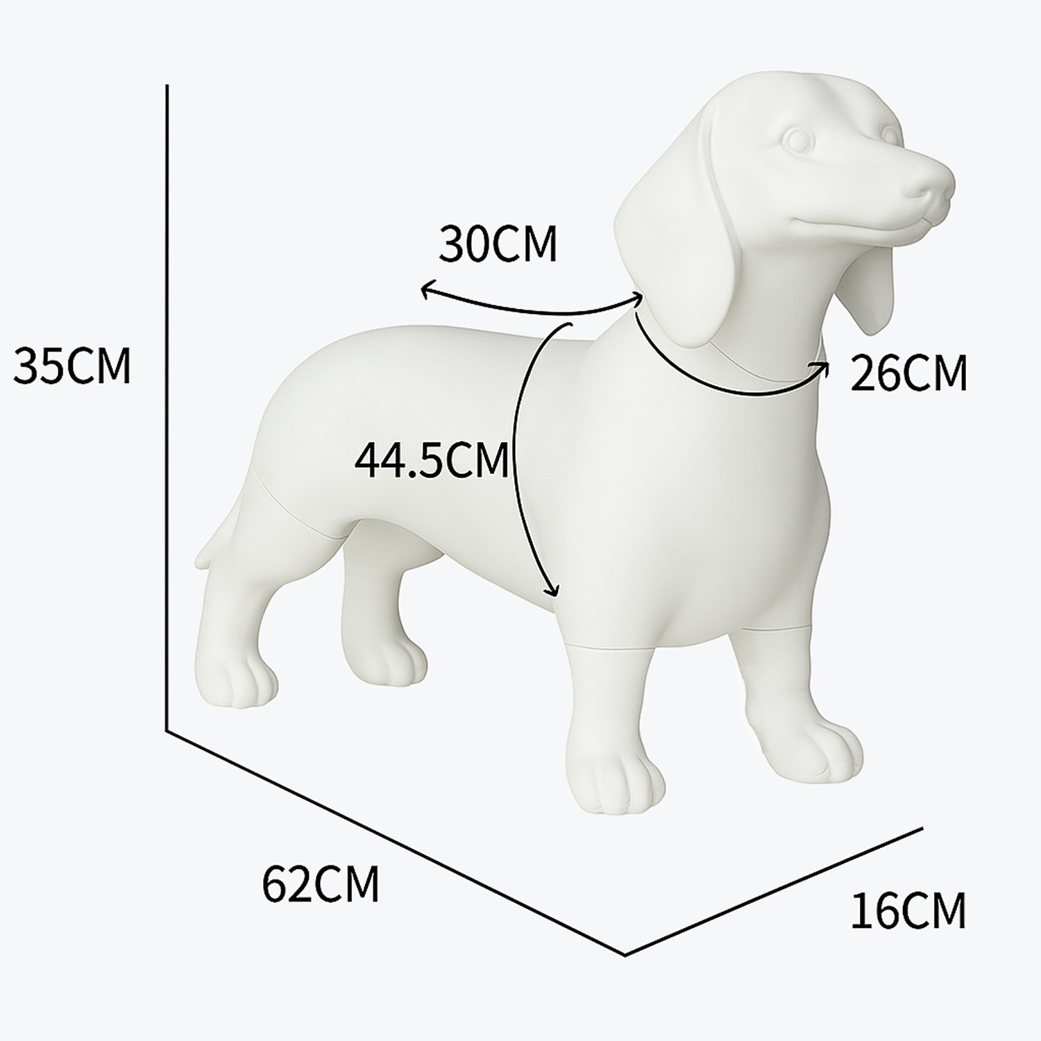 Machen Sie Ihre Hundemode zum Highlight! Mit dieser eleganten Schaufensterfigur in Dackelform setzen Sie Hundebekleidung und Accessoires gekonnt in Szene. Die Figur eignet sich perfekt für Tierbedarfsläden, Zoofachgeschäfte, Sportgeschäfte, Kaufhäuser und Messen und bietet einen charmanten, realitätsnahen Eindruck.