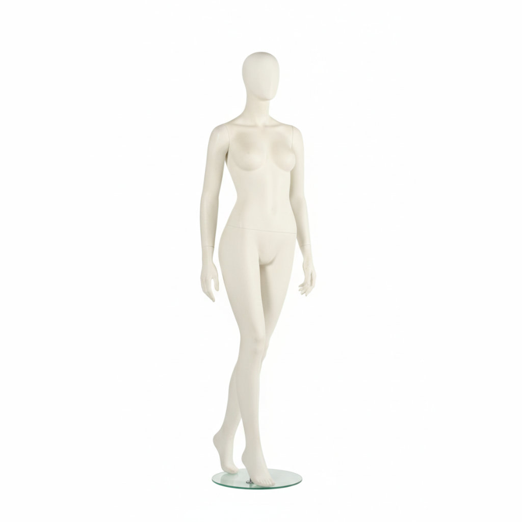 - Lieferumfang: Schaufensterpuppe inkl. runder Glasstandplatte