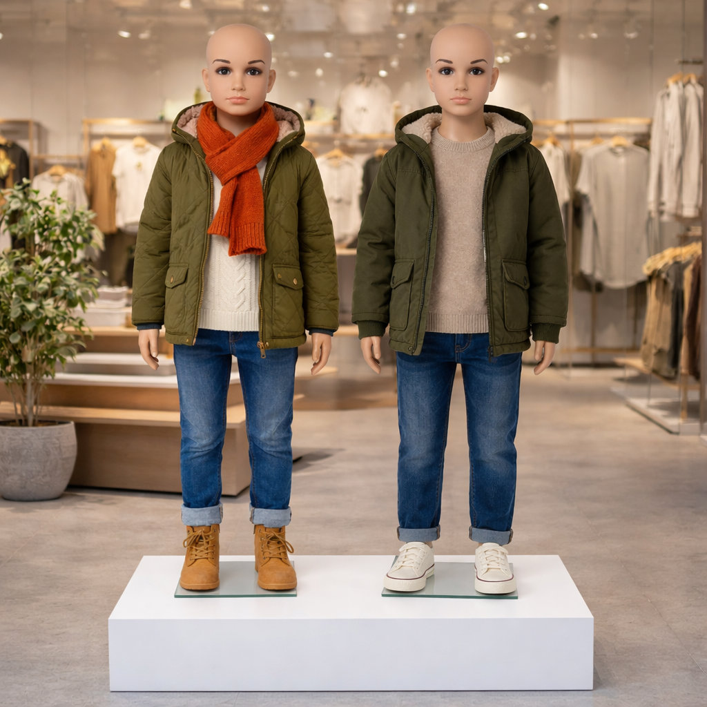 - Lieferumfang: Kinder-Schaufensterpuppe inkl. Glasstandplatte (21,5 × 30 cm)