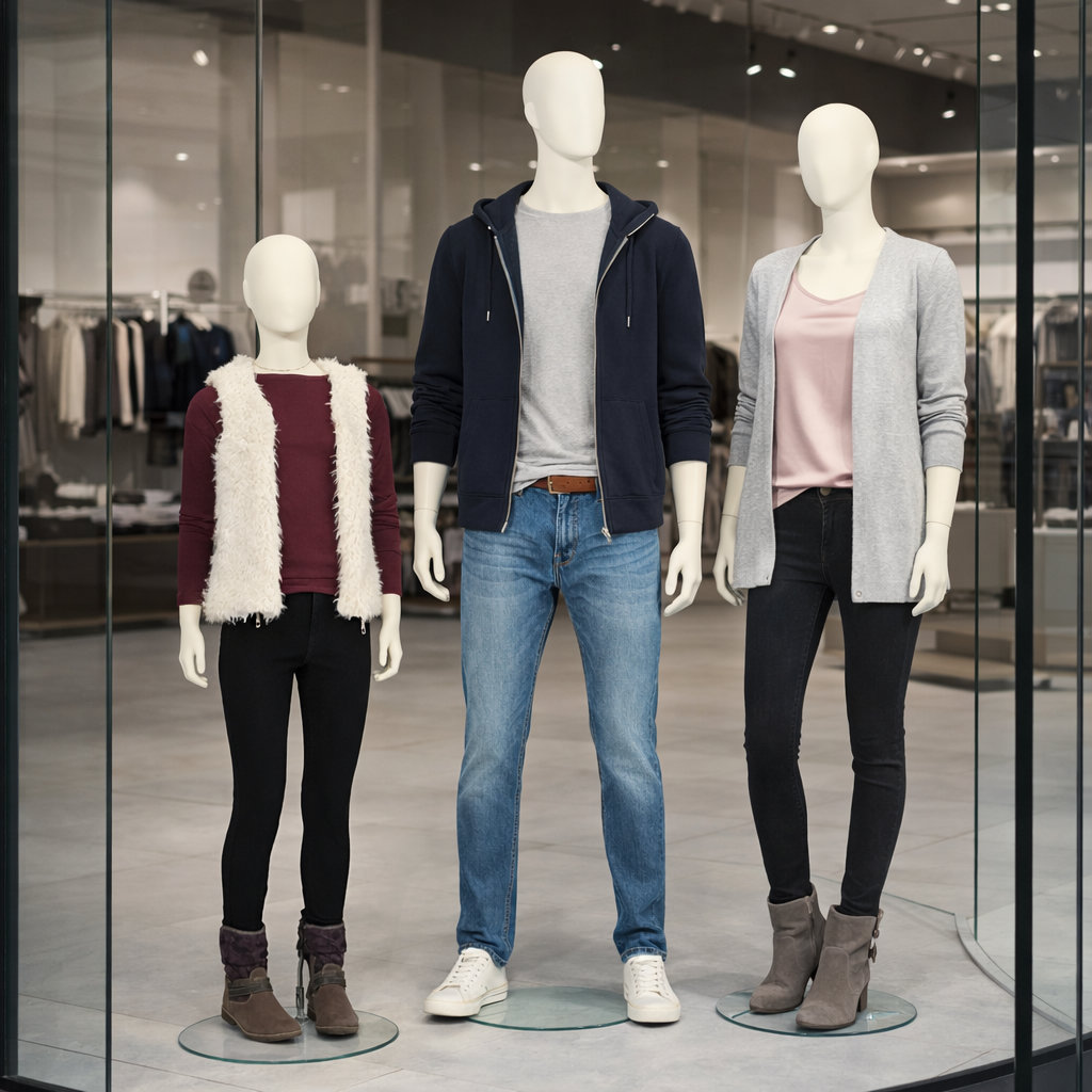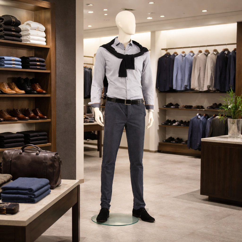 - Lieferumfang: Schaufensterpuppe inkl. runder Glasstandplatte