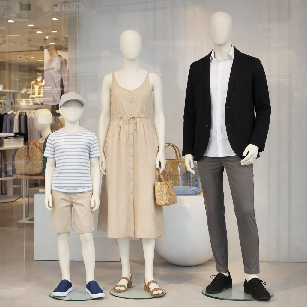 - Lieferumfang: Schaufensterpuppe inkl. runder Glasstandplatte