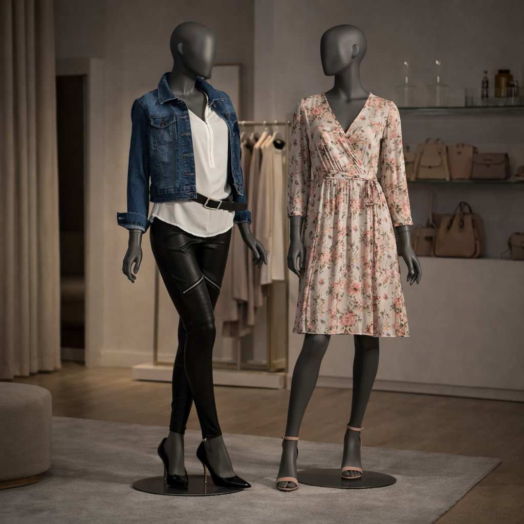 - Lieferumfang: Schaufensterpuppe inkl. runder Glasstandplatte