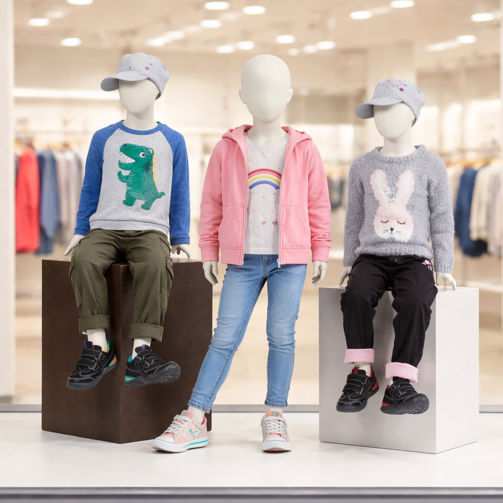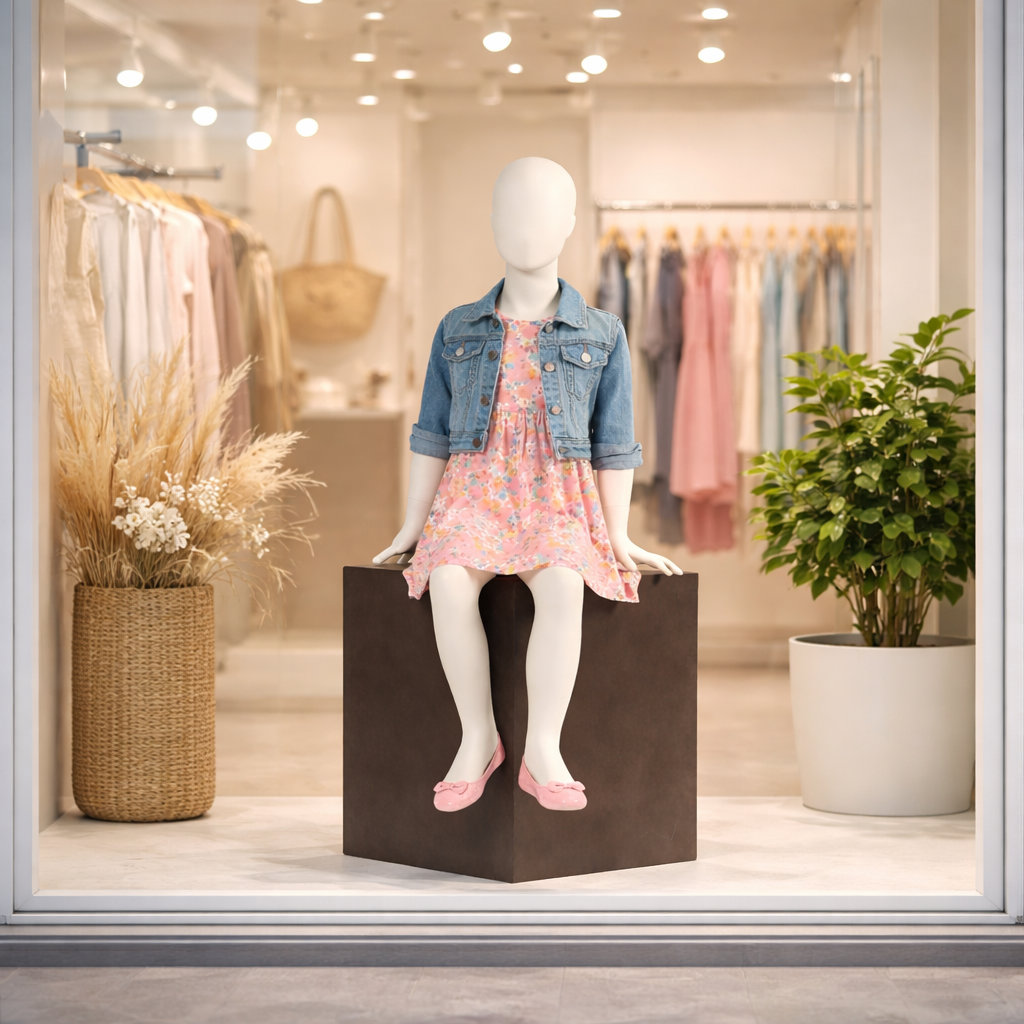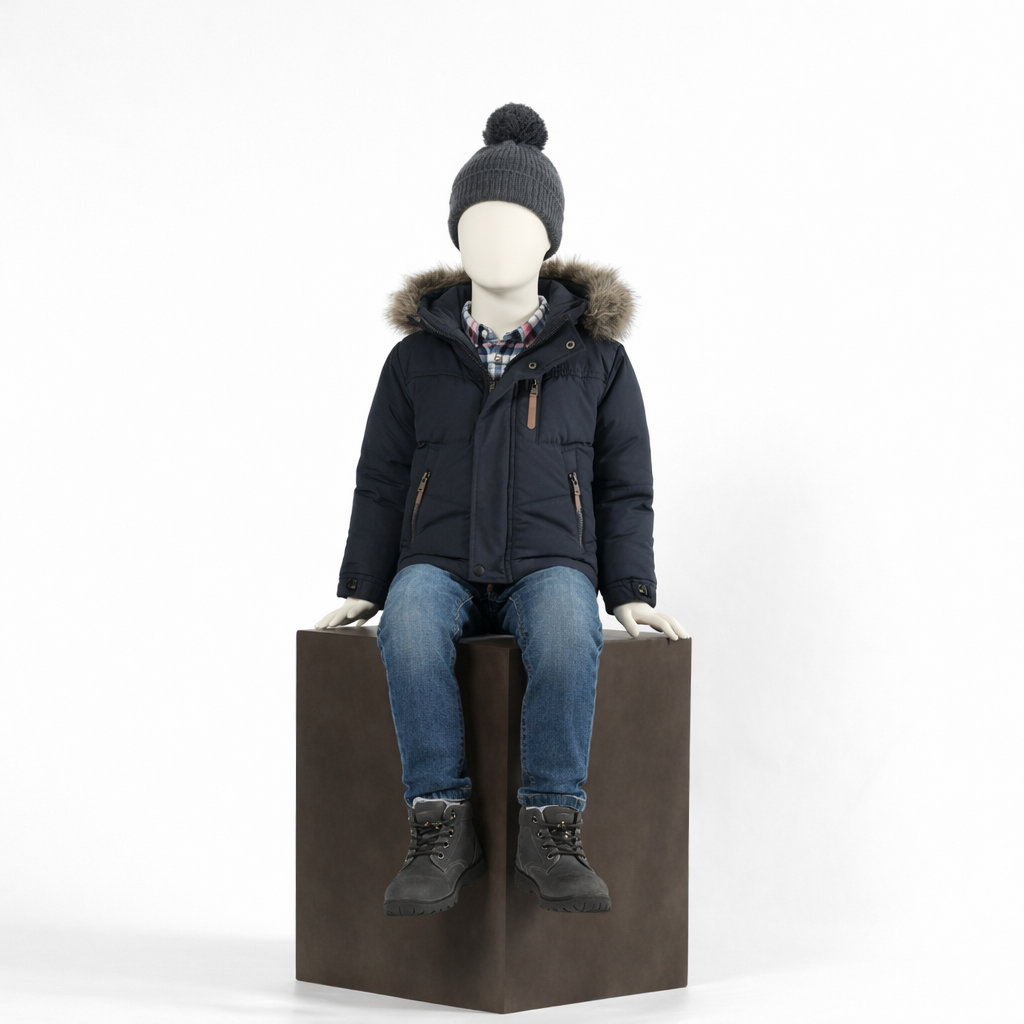 - Lieferumfang: Kinder-Schaufensterpuppe sitzend