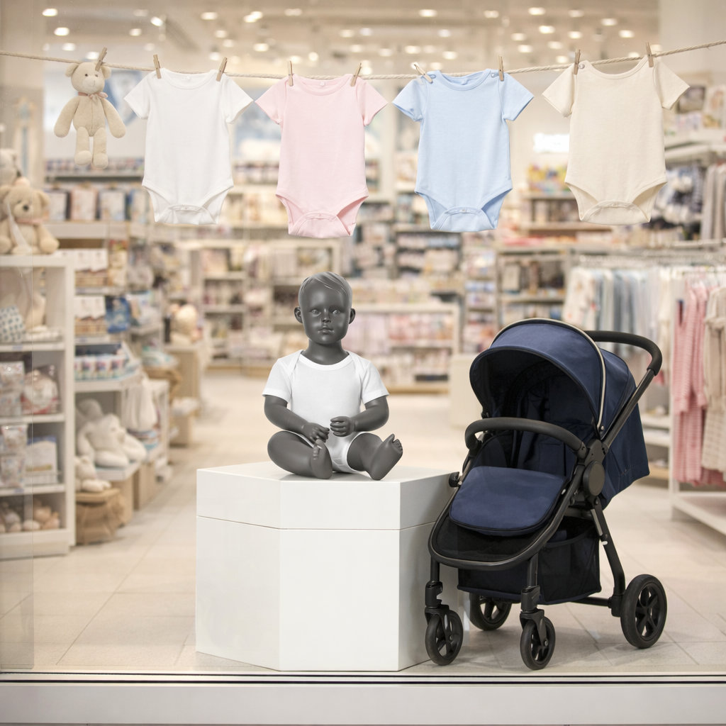Sitzende Schaufensterpuppe Baby