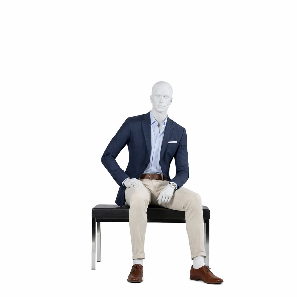 Sitzende Schaufensterpuppe männlich