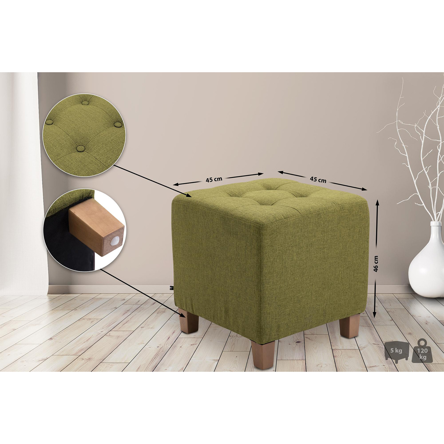 Dank seiner kompakten Maßen (B45 x T45 x H46 cm) bietet der Hocker maximalen Sitzkomfort bei minimalem Platzbedarf. Der strapazierfähige Stoffbezug sorgt für eine lange Lebensdauer und ist besonders pflegeleicht.