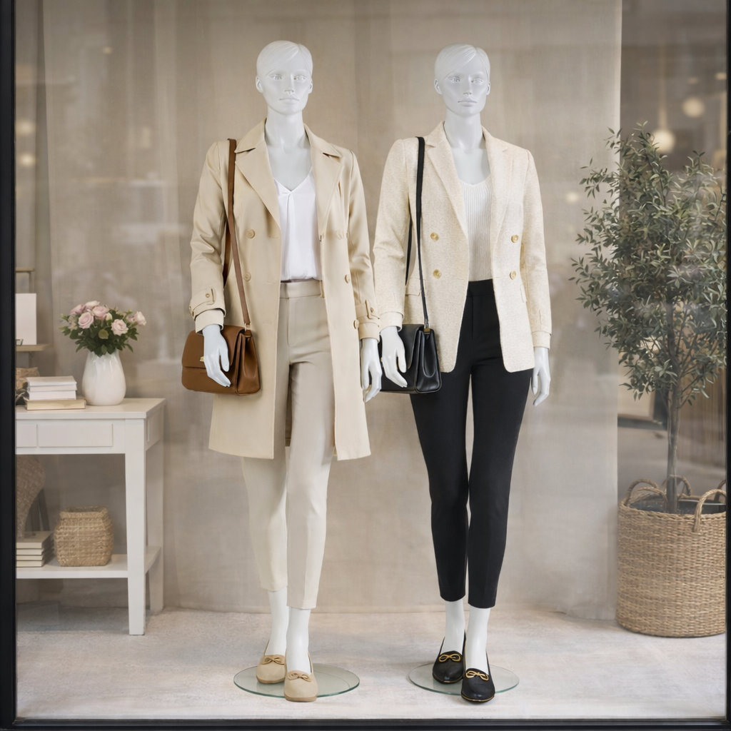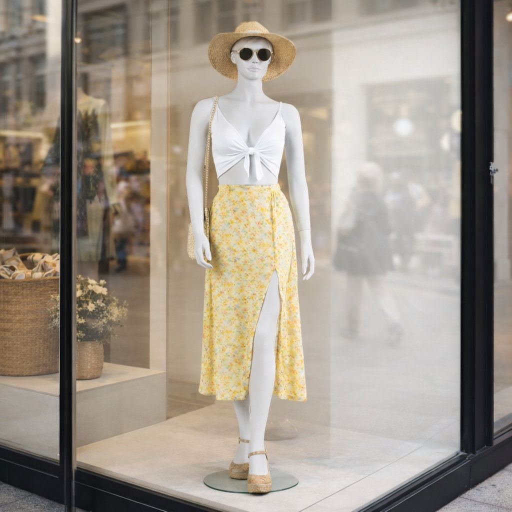 - Lieferumfang: Schaufensterpuppe inkl. runder Glasstandplatte