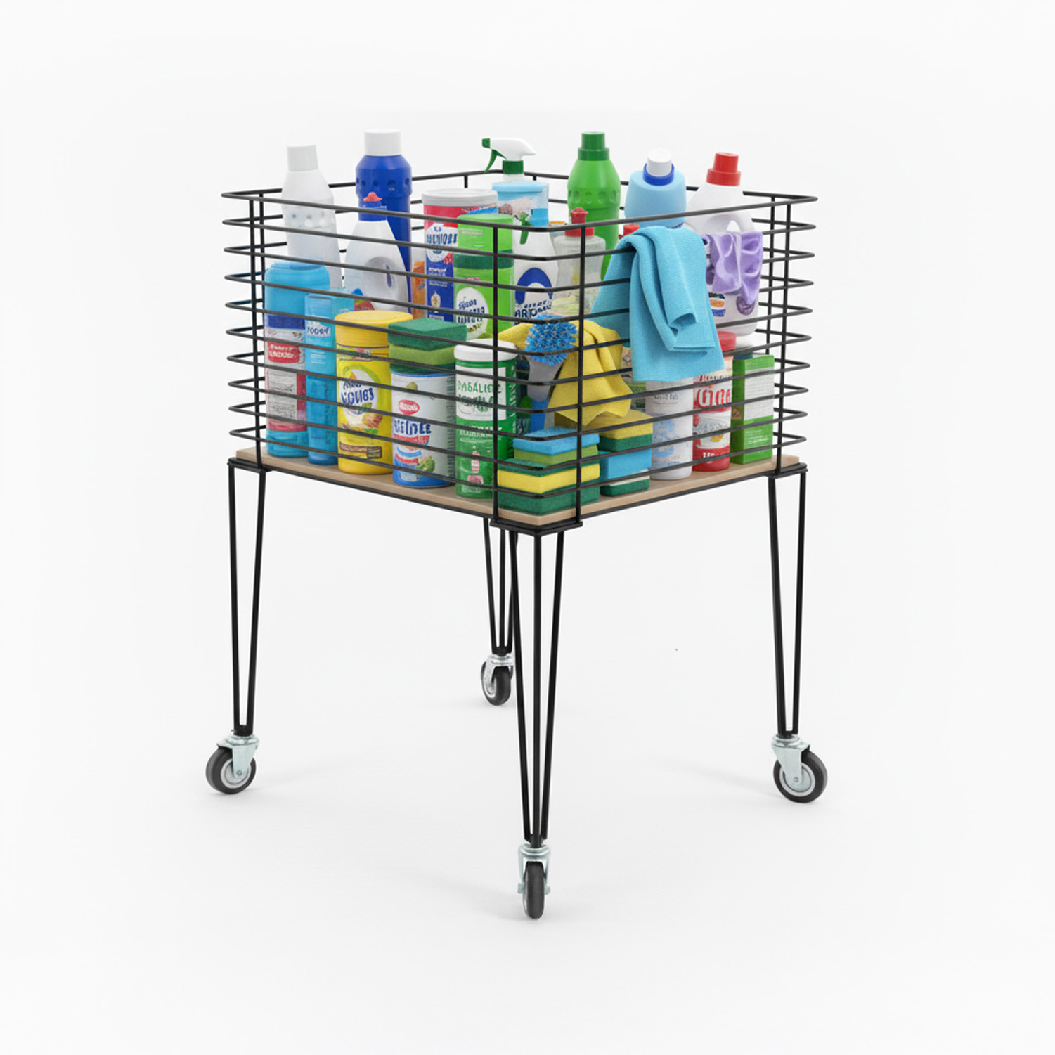 Dieser stabile Wühlkorb mit Metall-Fachboden und leichtgängigen Rollen präsentiert Aktionsware gut sichtbar und sofort griffbereit. Die robuste Metallkonstruktion und die flexible Mobilität machen ihn ideal für spontane Platzierungen in stark frequentierten Bereichen.